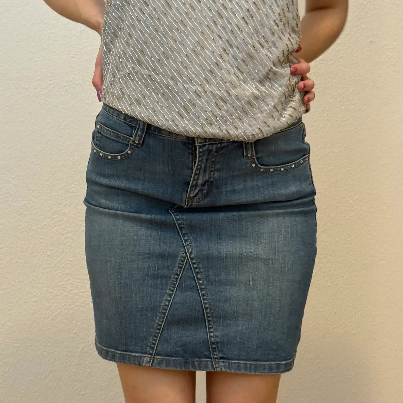Rhinestone Pocket Denim Skirt – Vintage Skirt Y2K (S)
