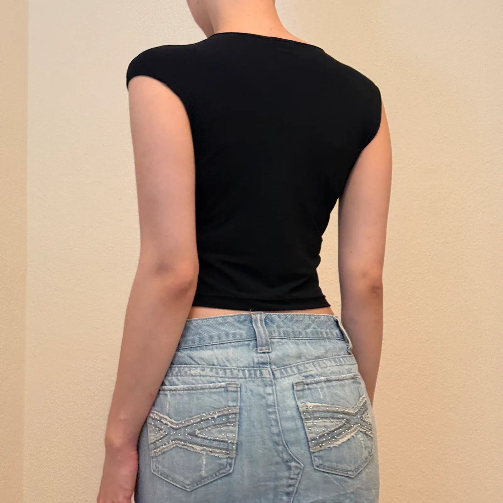 Black Lightning Rhinestone Tank – Vintage Y2K Fitted Top (S)