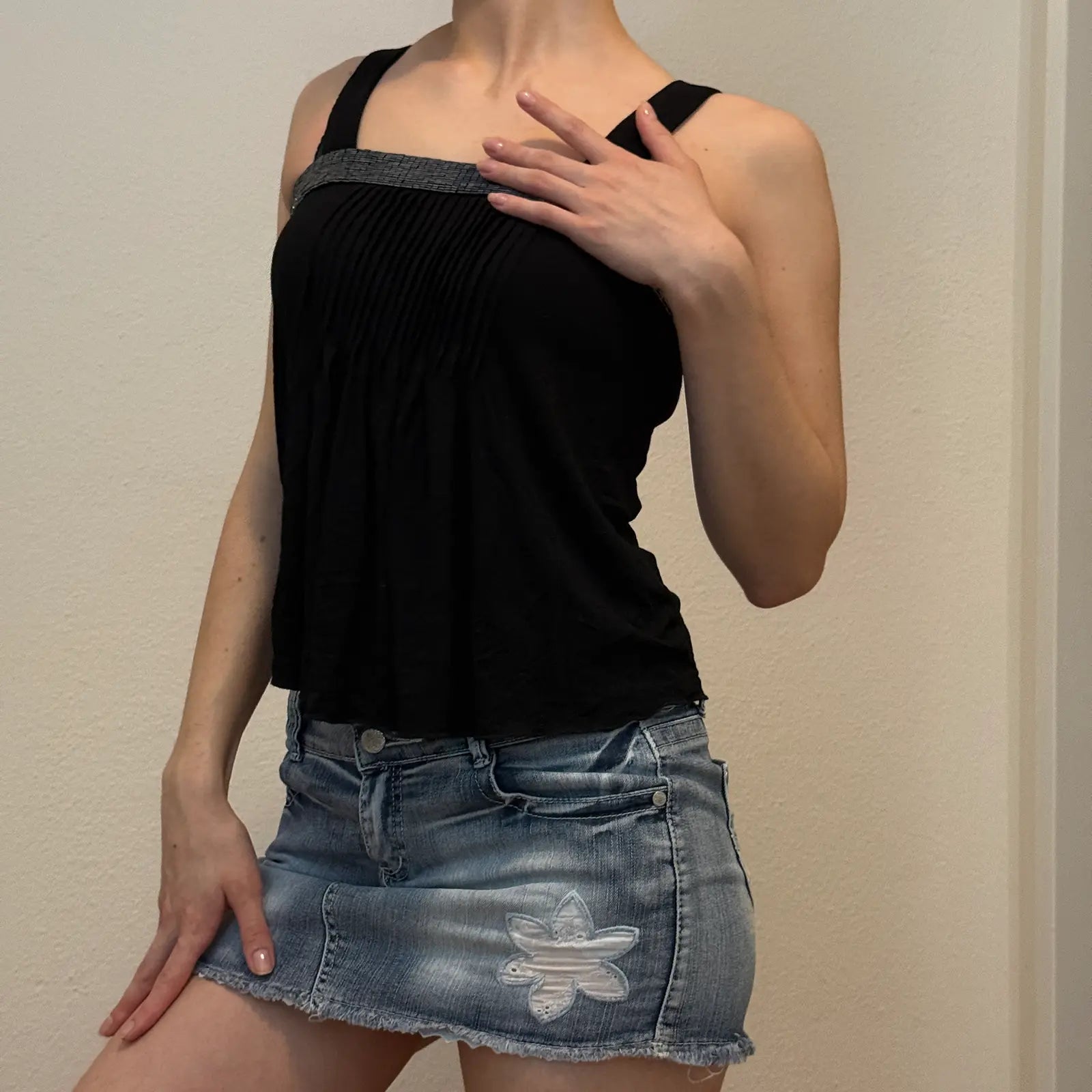 Emporio Armani Black Sequin Trim Top - Y2K Elegant Designer Tank (S)