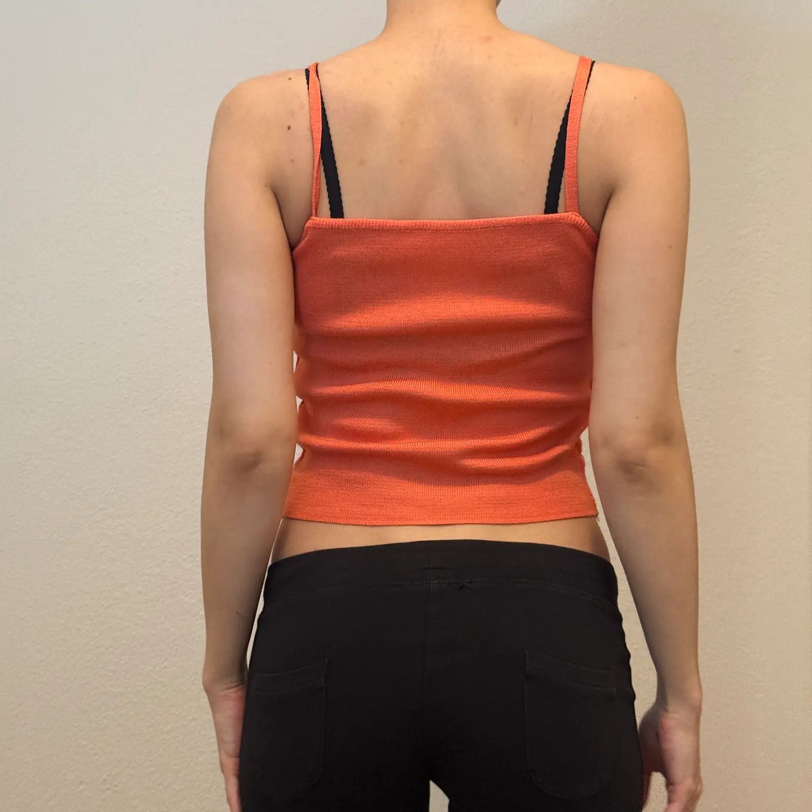 Orange Knit Cami Tank Top – Minimalist Retro Style (S)