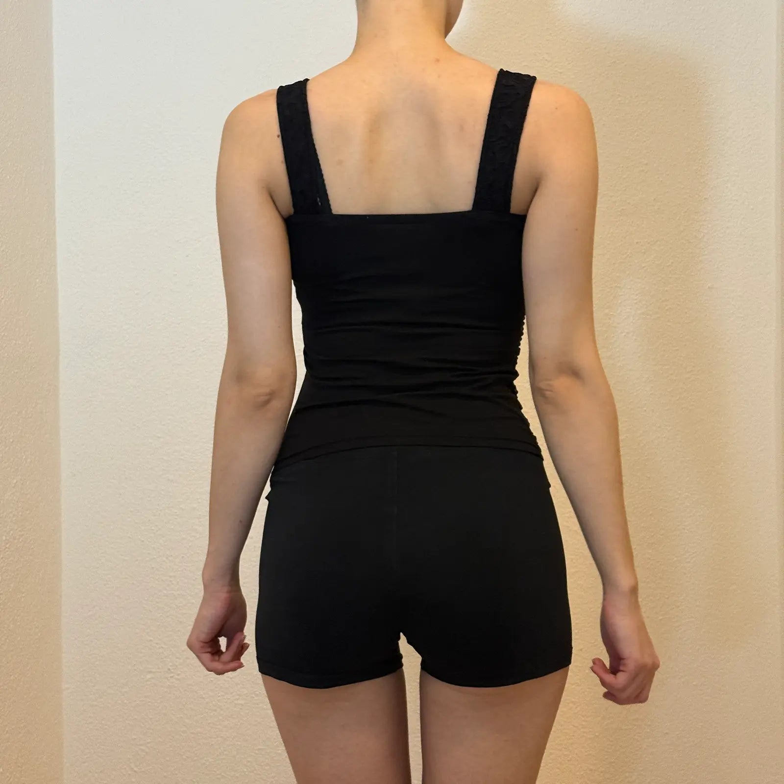 Y2K Black Lace Corset Style Top – Rhinestone Studded Bustier Tank (S)