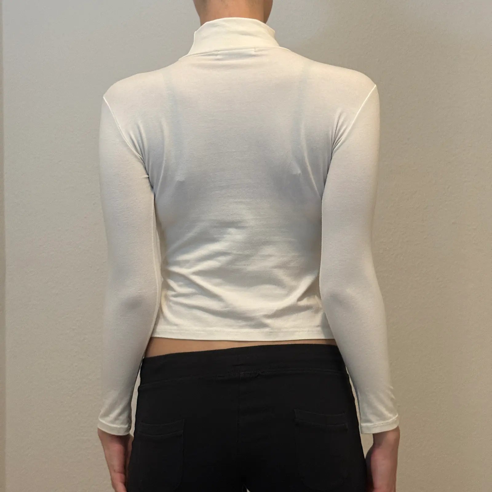 Y2K White Rhinestone Logo Mock Neck Long Sleeve Top - X-Cape (S)